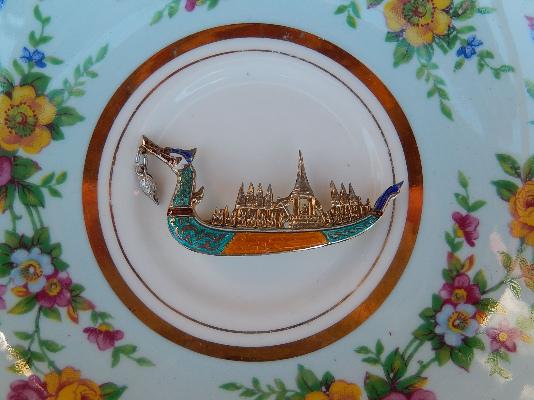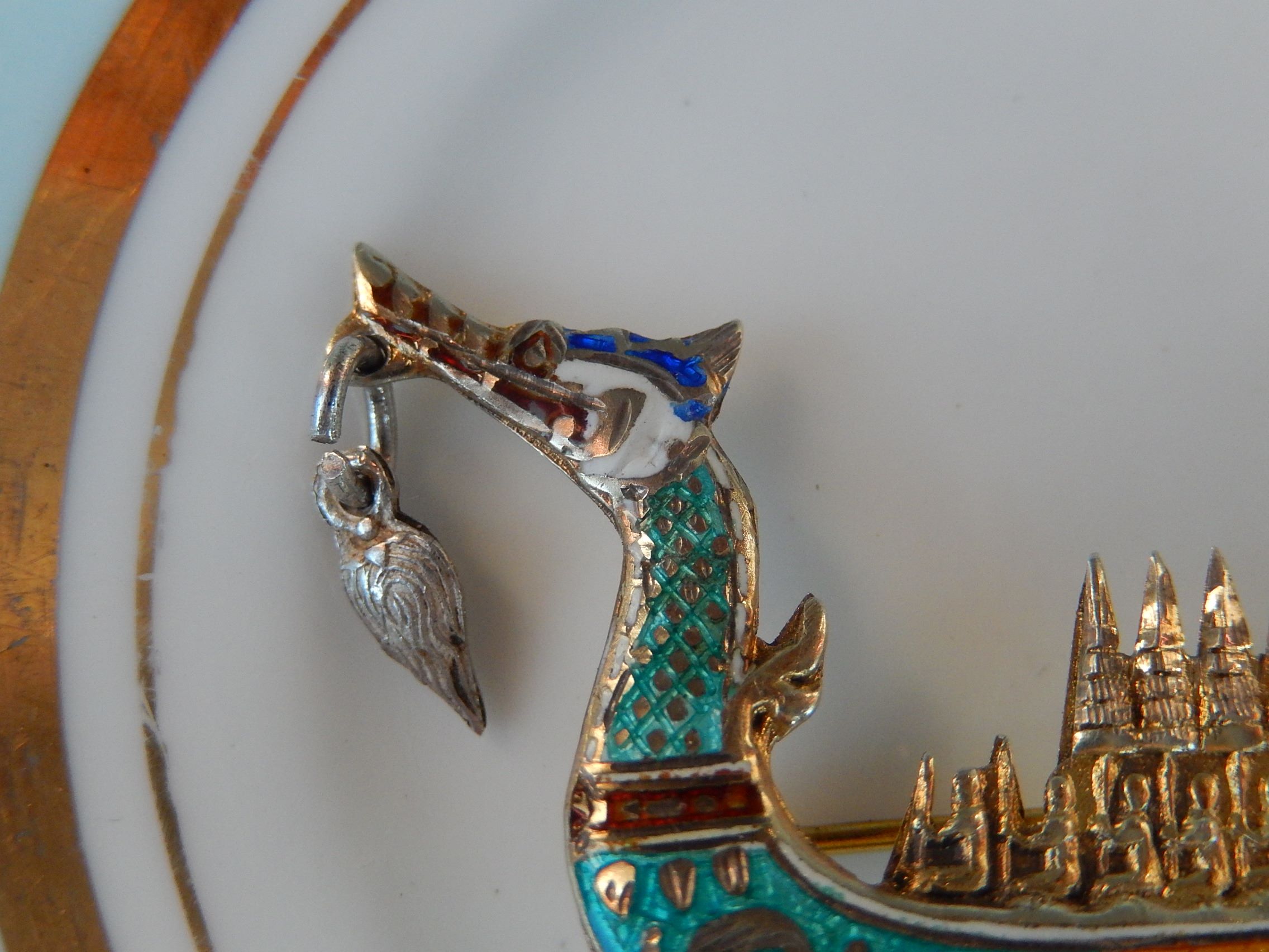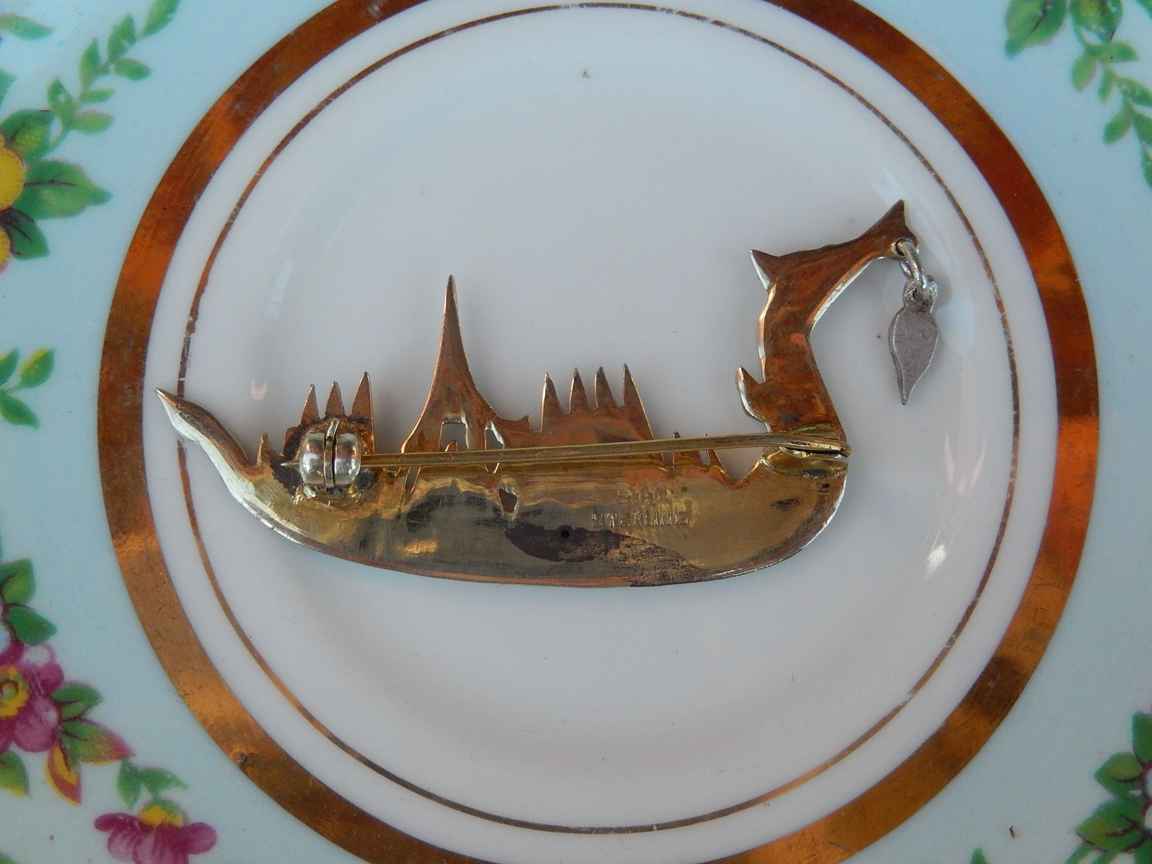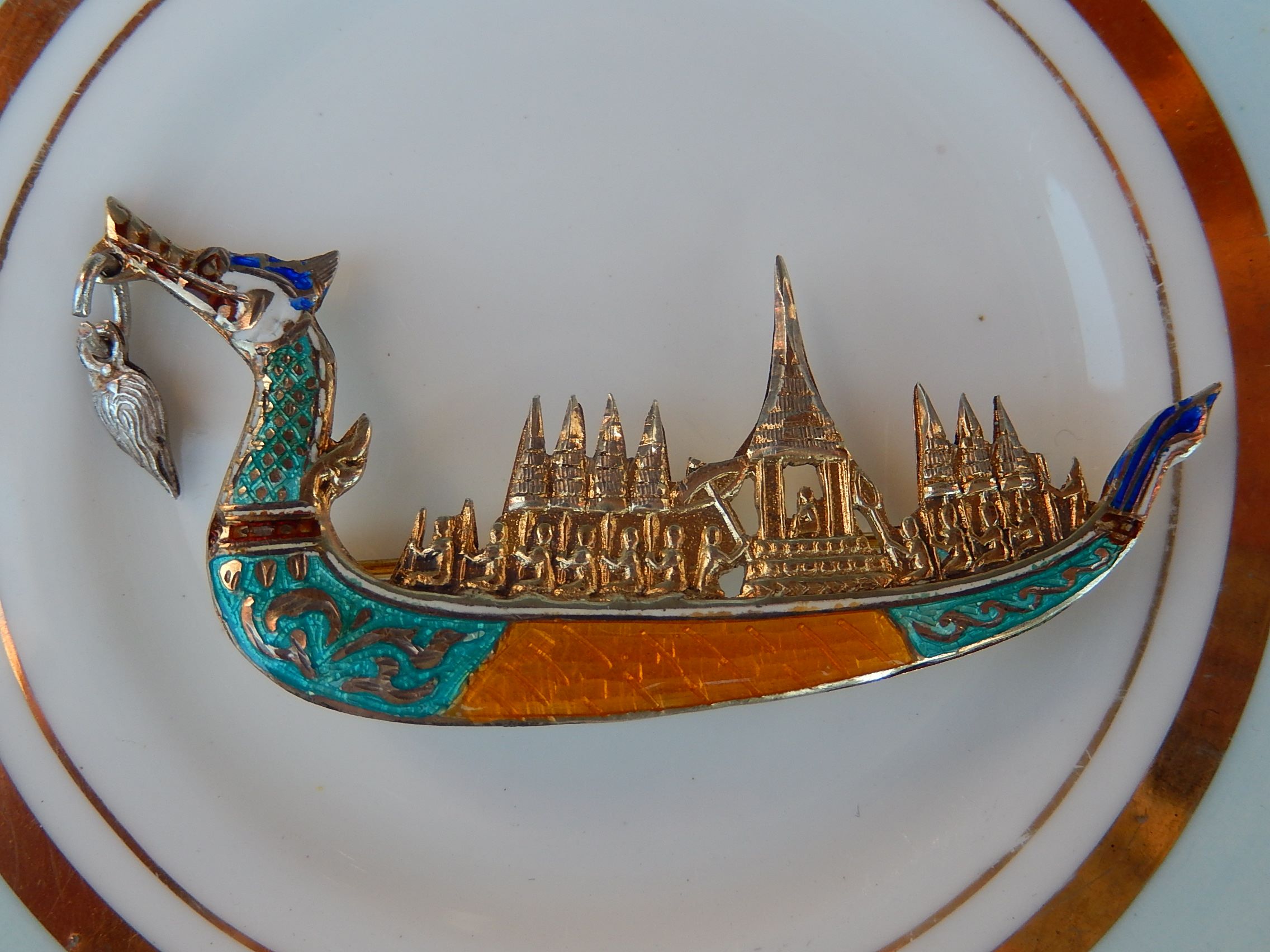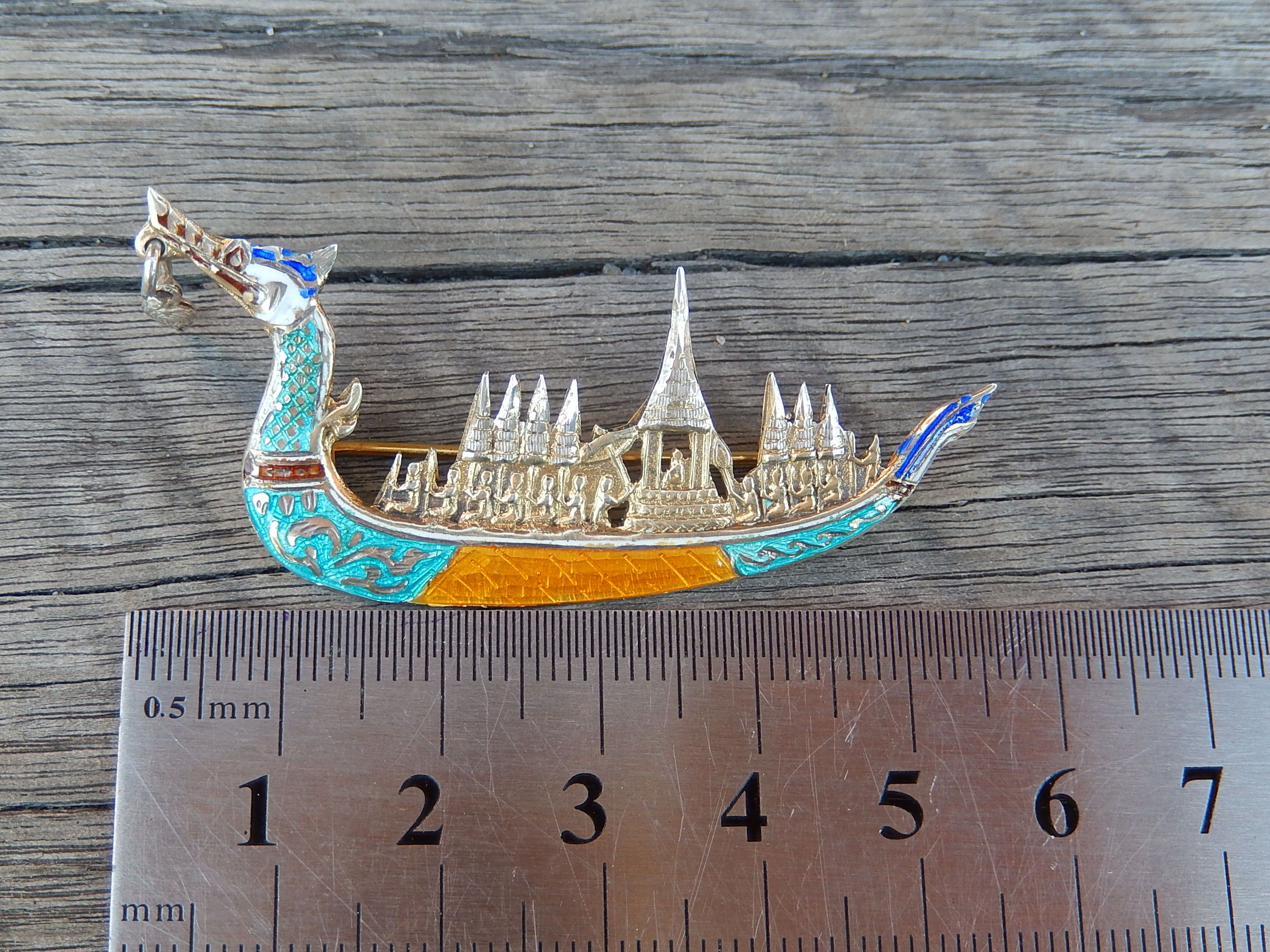 This Siam Sterling and Enamel Boat Brooch weighs 4.9g, and is 53mm long.