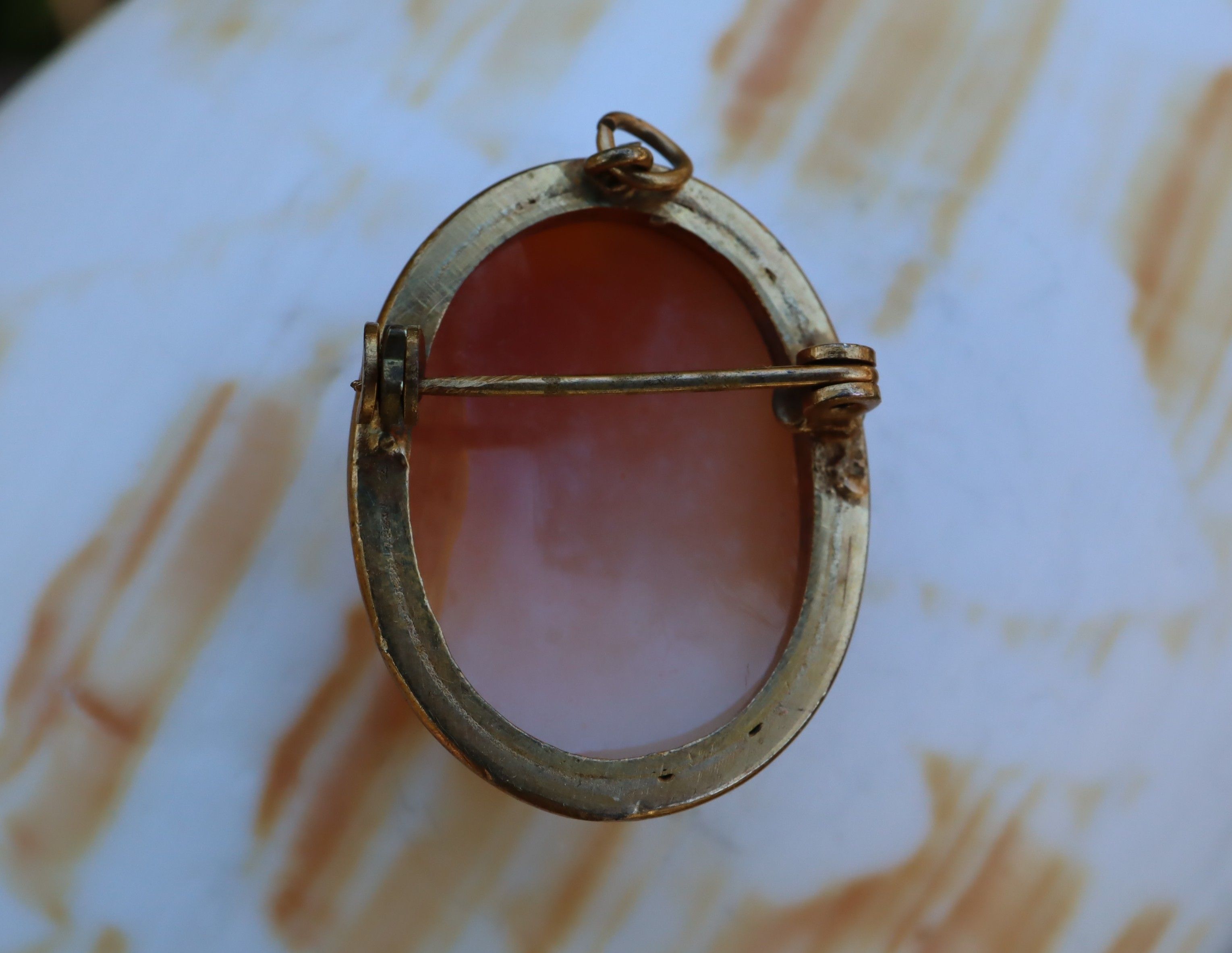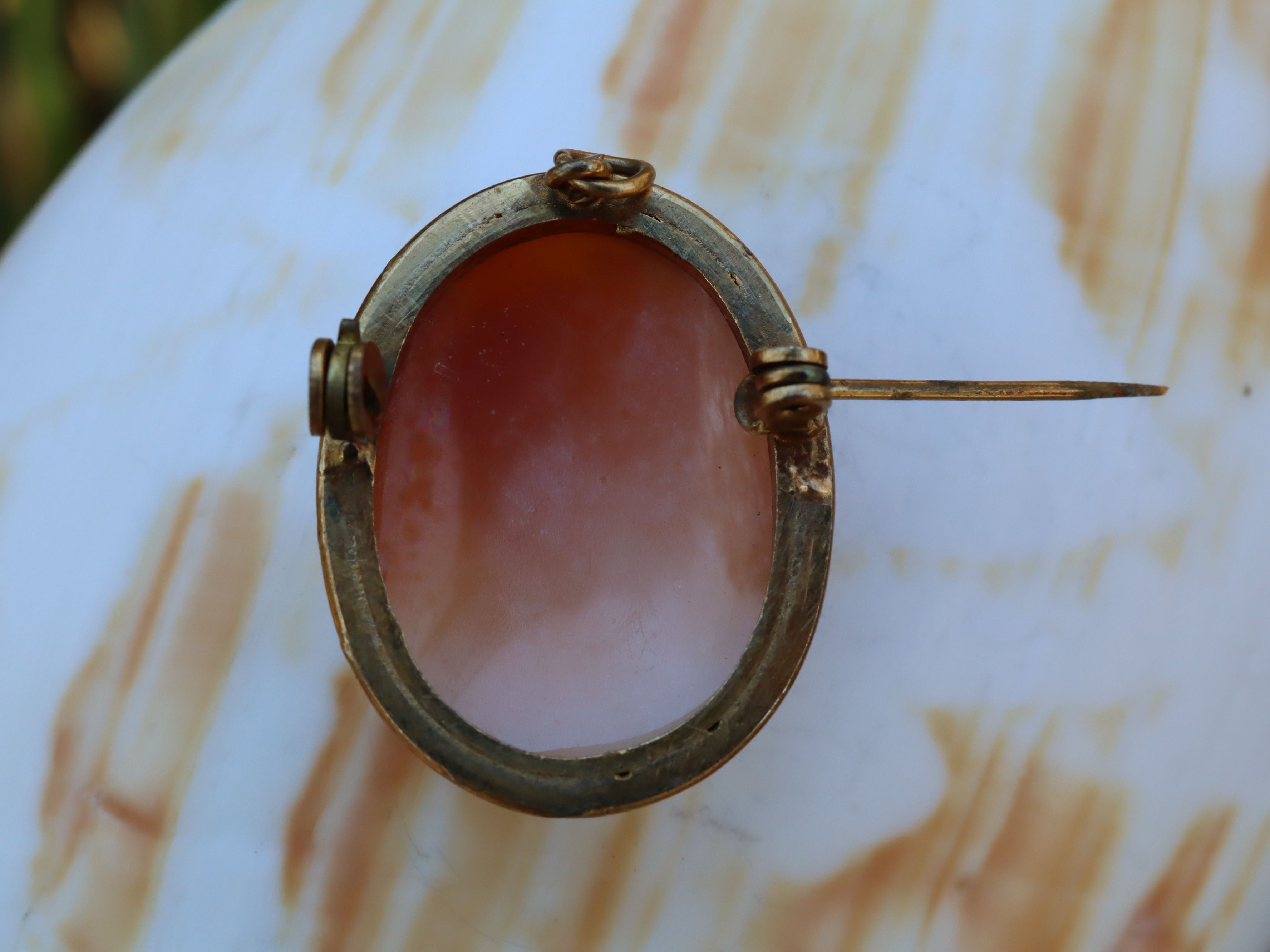 This Italian shell cameo brooch/pendant in 9ct gold is a beautifully detailed piece, weighing 5.93g and measuring 28.5 mm x 22 mm. The hand shell carving has lovely character and depth, and the gold mount is both elegant and practical, allowing it to be worn as either a brooch or a pendant. A classic, timeless cameo that adds charm to any jewellery collection.