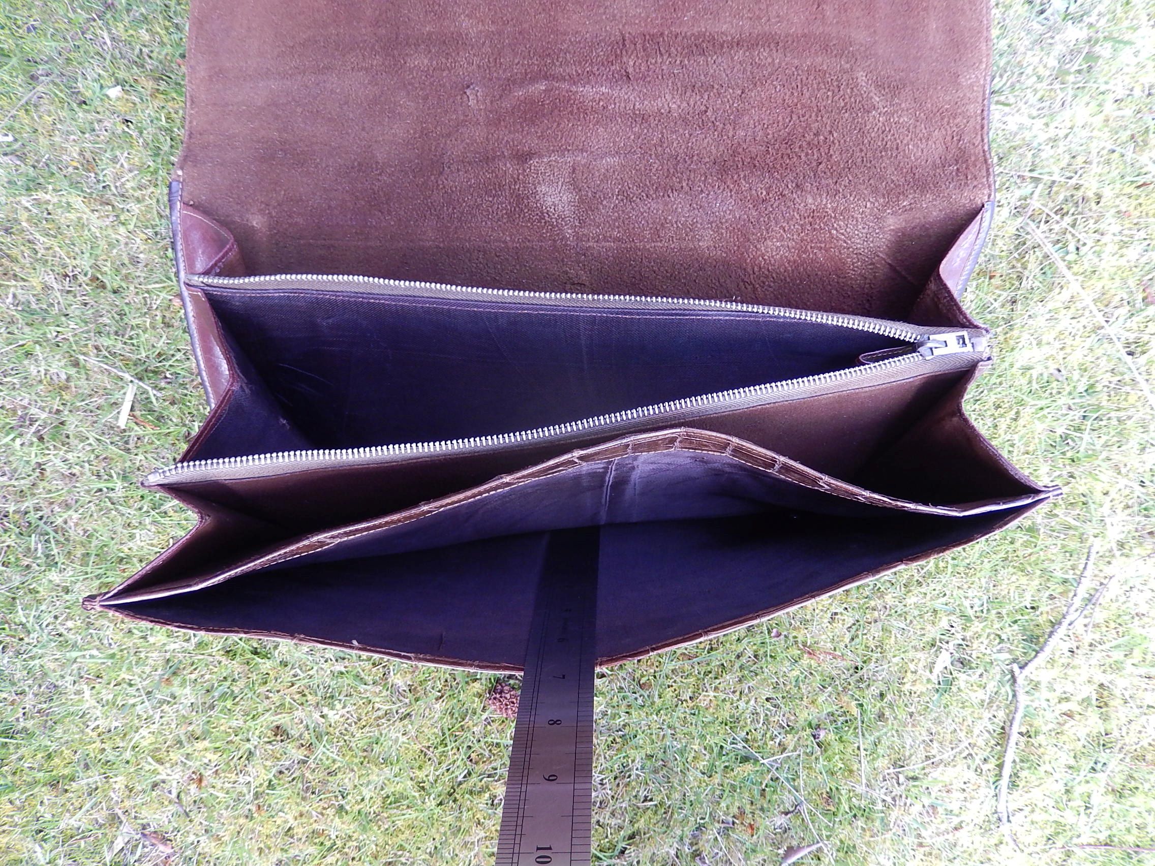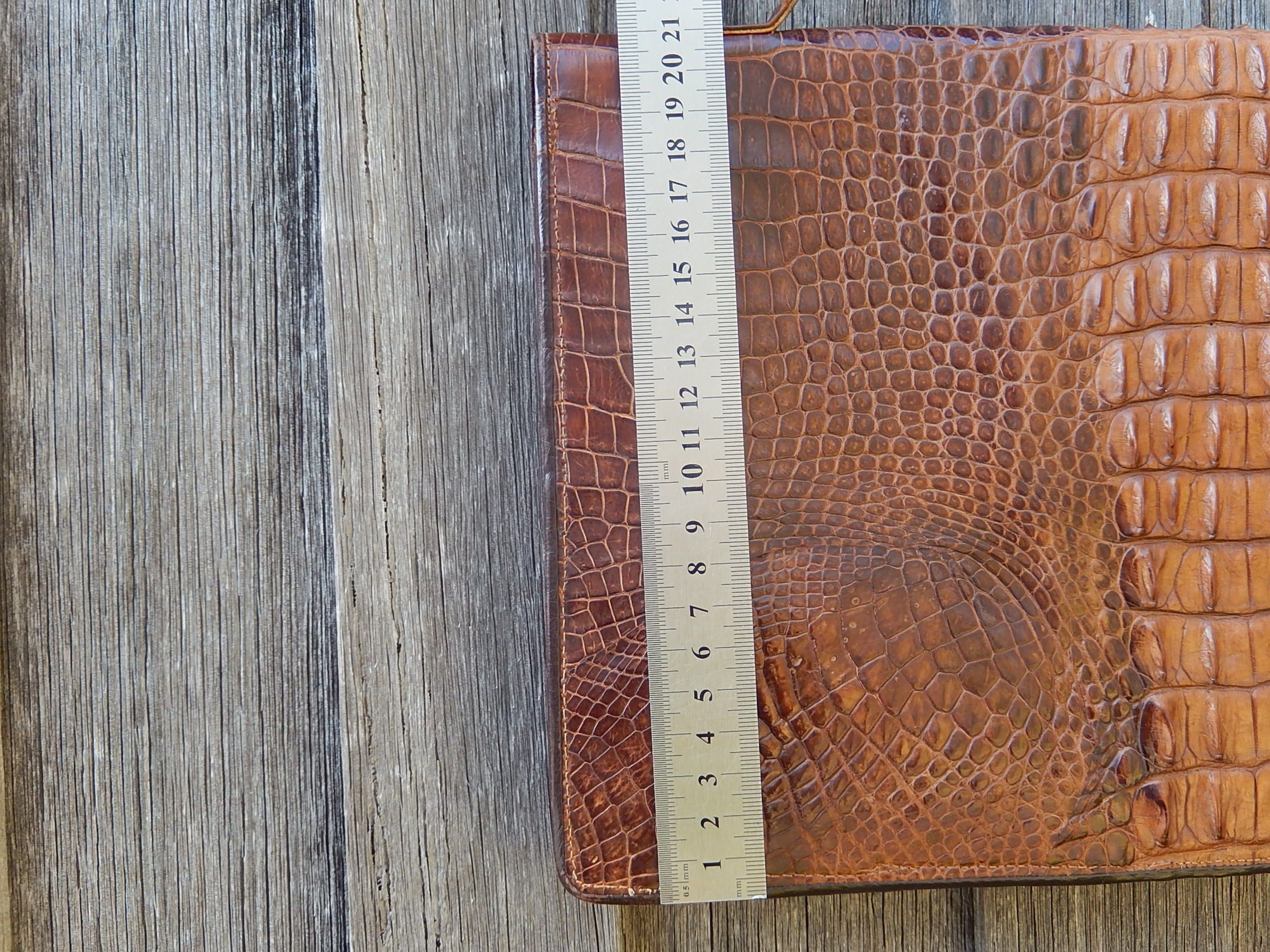 The beautiful vintage Juvenile Crocodile Skin Handbag was made c.1960. It is 35cm x 21cm, and has a zipped section.