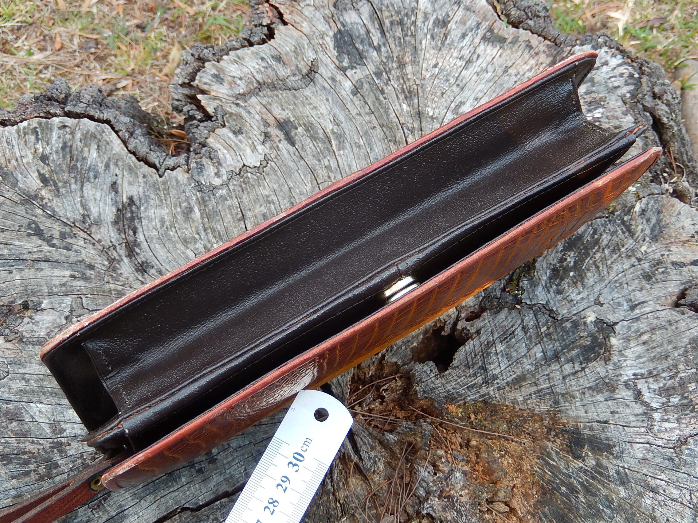 This juvenile crocodile skin clutch purse was made c.1970 and is 27cm x 15cm. It is in excellent condition and has only been lightly used. The hand strap is interchangable and the inner pockets are immaculate. One of the more interesting luxury items in store at present.