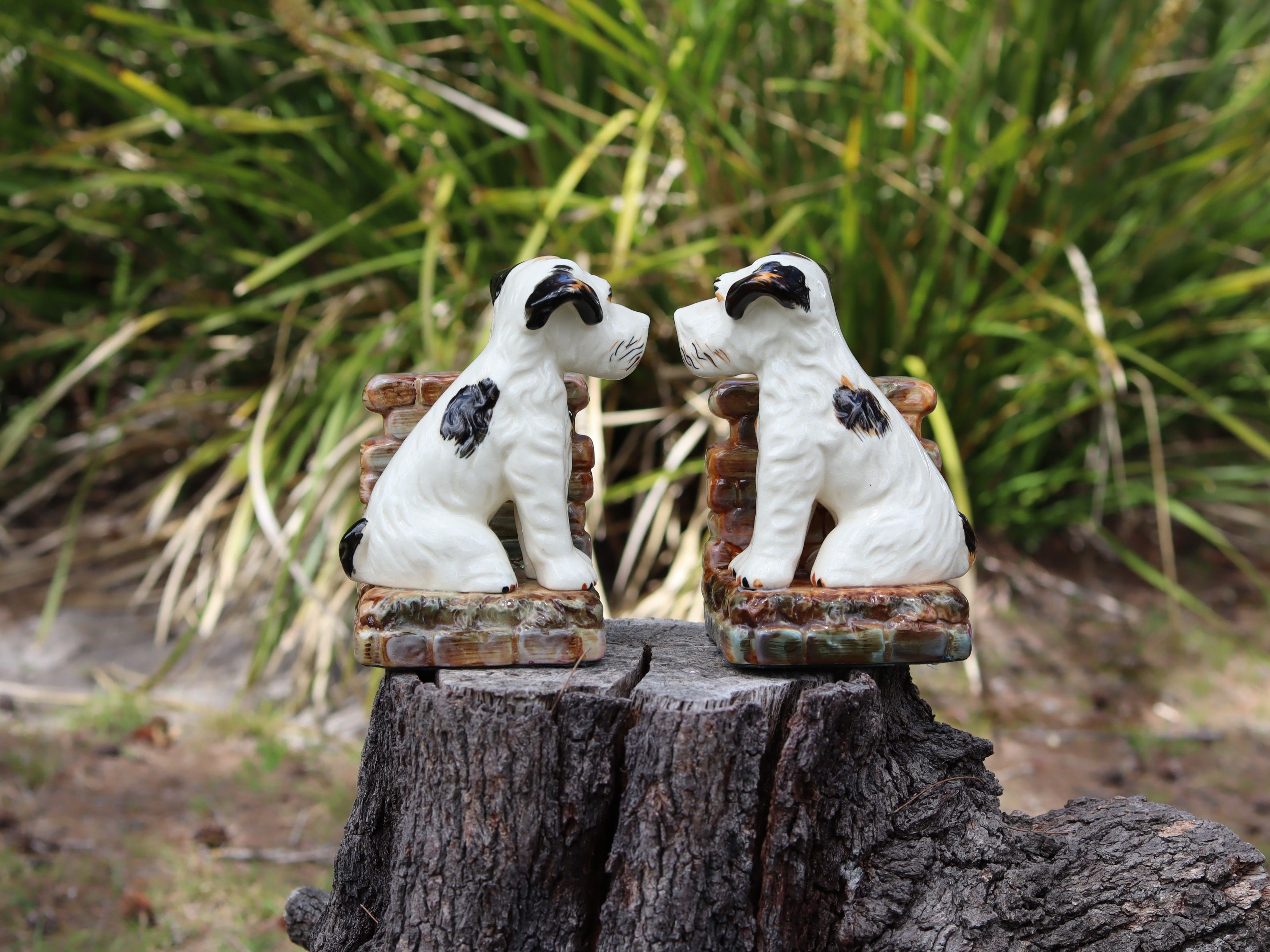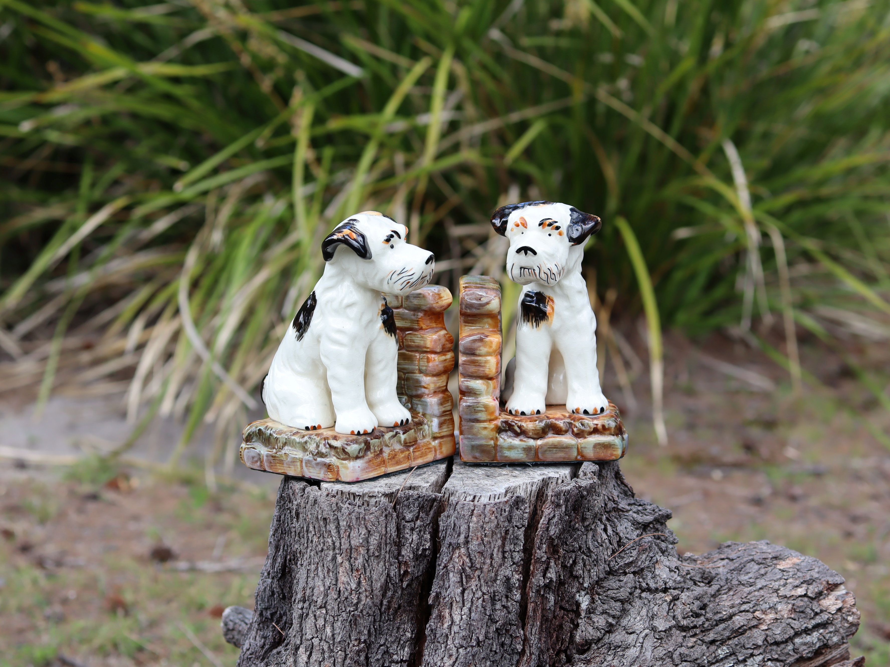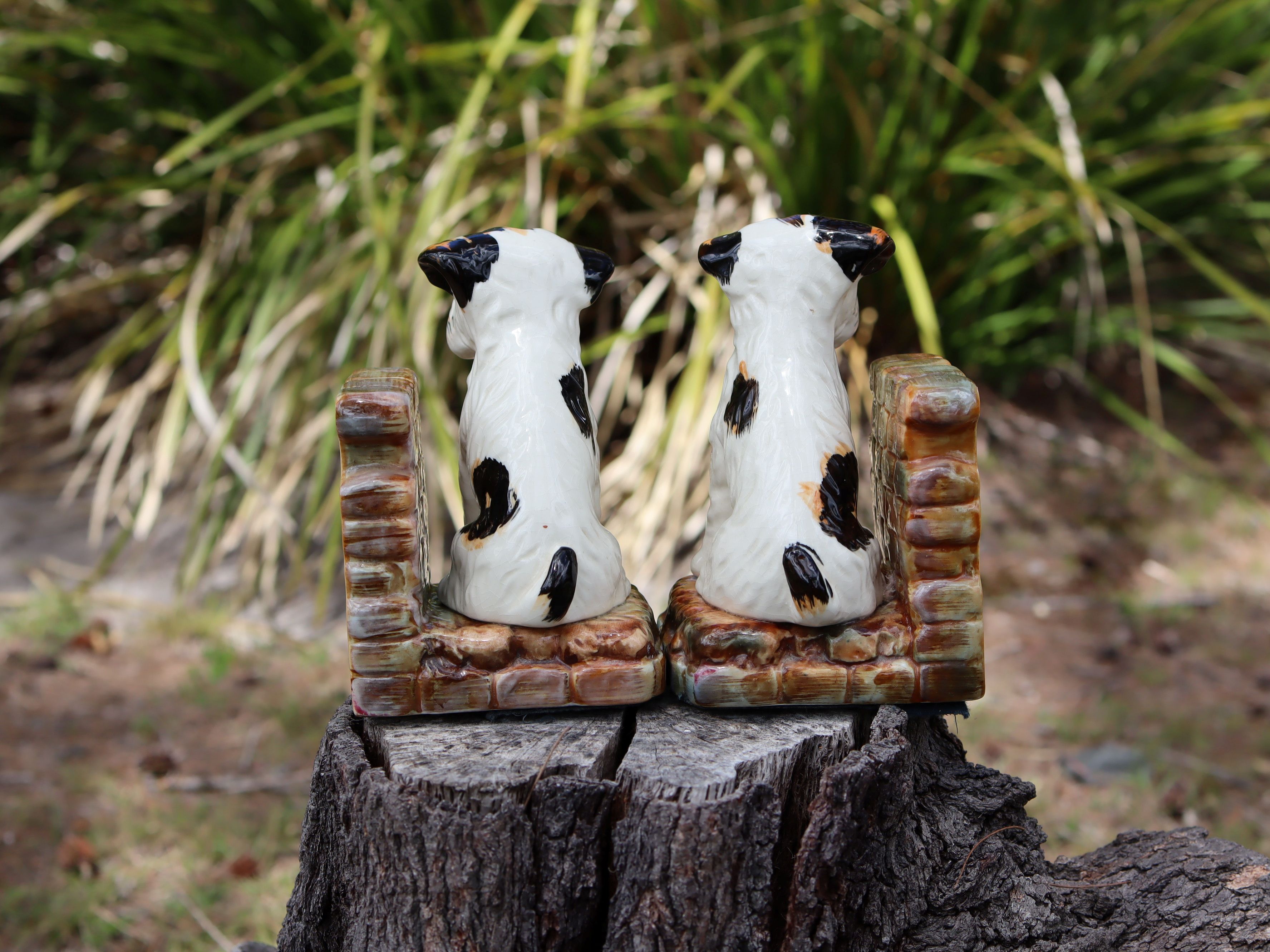 This hand-painted pair of c.1950 bookends features two very cute little puppies, each full of character and charm. They stand 14cm high, with bases approximately 9.5cm × 8.5cm, and weigh around 700g each. Sold as a pair, they are $95 in store and $115 online because of extra postage costs. A cheerful mid-century set that adds warmth and whimsy to any shelf.