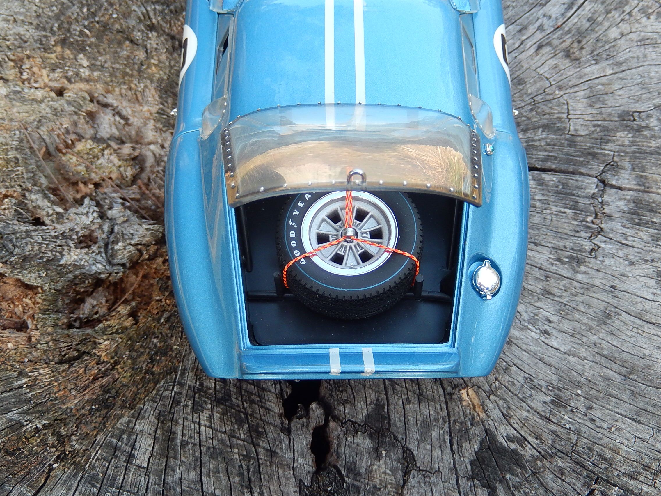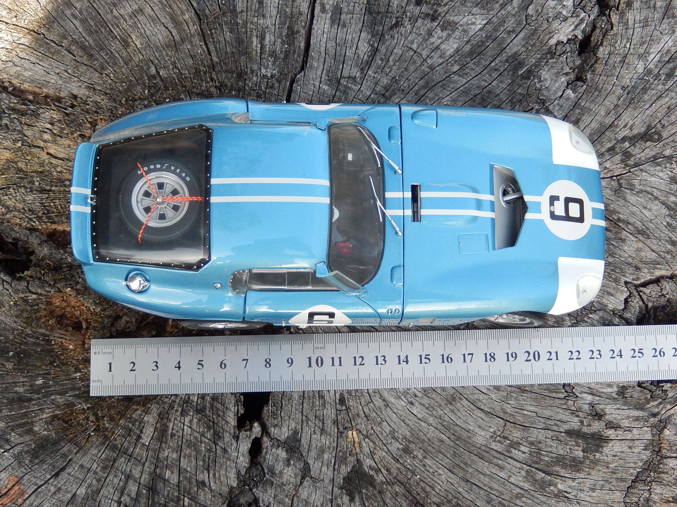 This Die Cast Model car was made by Racing Legends Exoto Inc. It is 1/18 in scale and is a Cobra Daytona Coupe 6 and is copyrighted 1997.