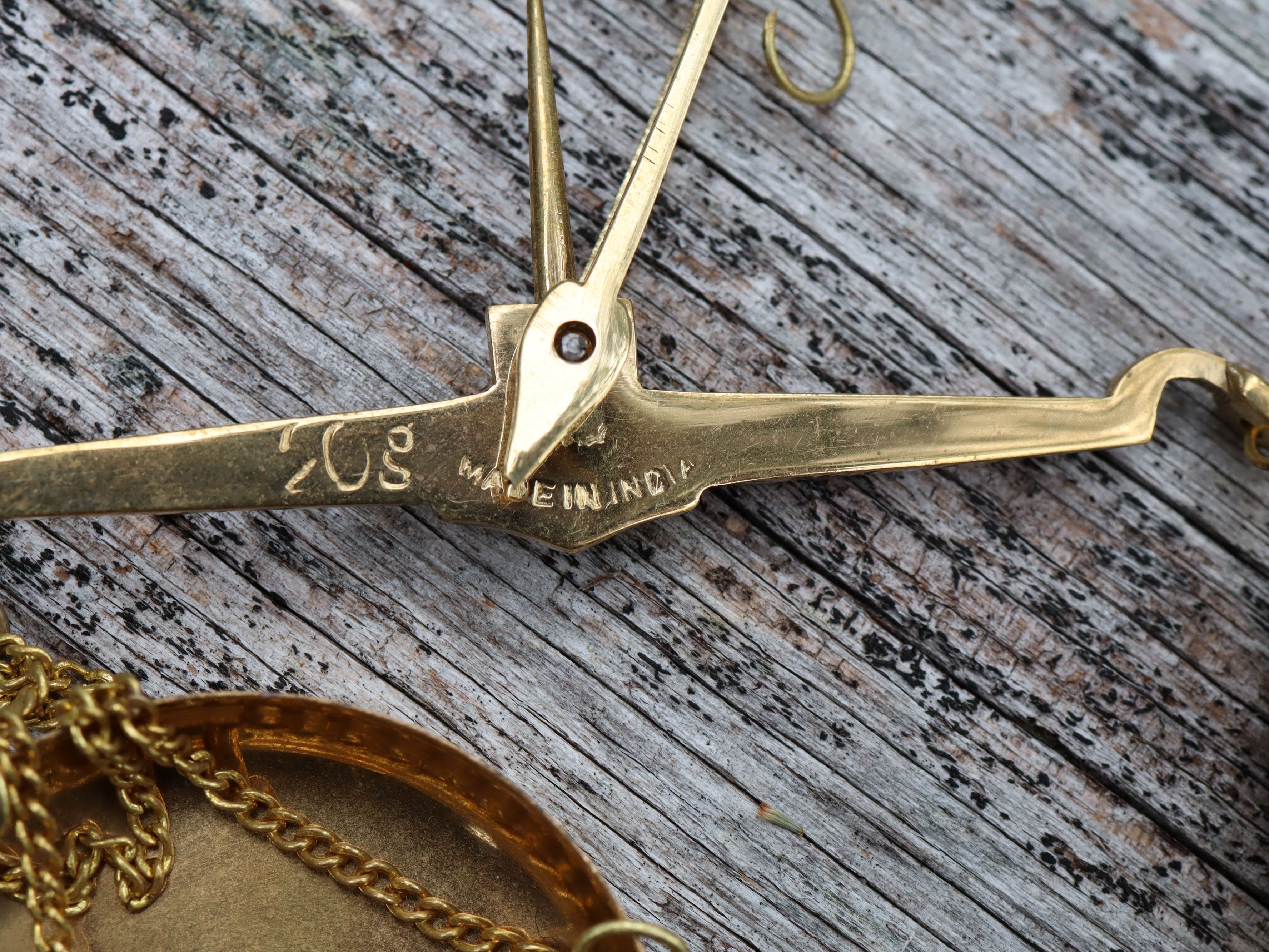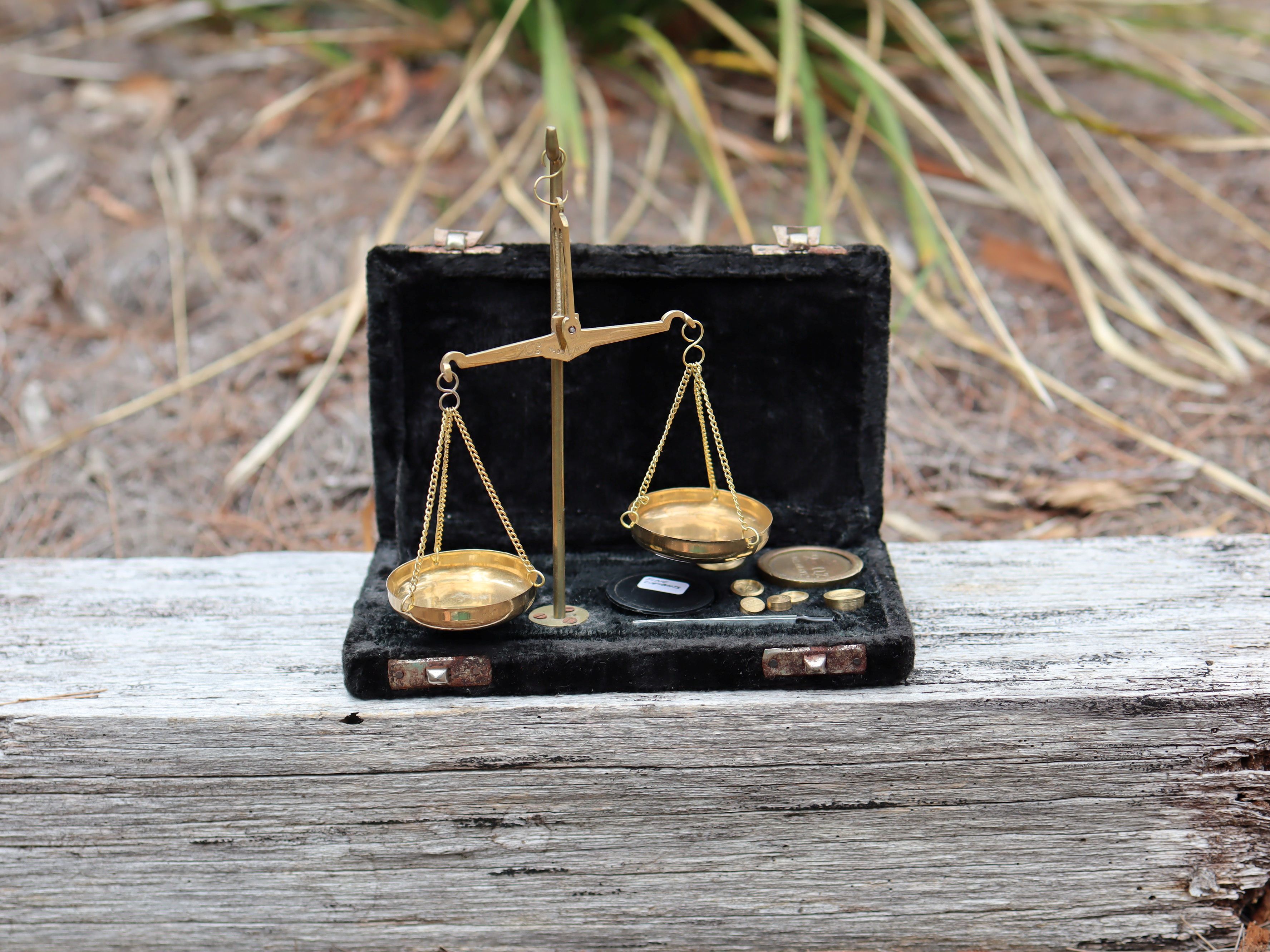 These portable gold scales were made in India and are designed for precise weighing, with fine gram weights stored neatly in a plastic container. The tweezers have a protective plastic sheath on the tips to keep the points aligned and prevent damage when not in use. Compact and practical, this type of scale is traditionally used by jewellers, traders, and goldsmiths for accurate measurement of small quantities, and remains a useful and reliable tool for anyone old school working with precious metals.