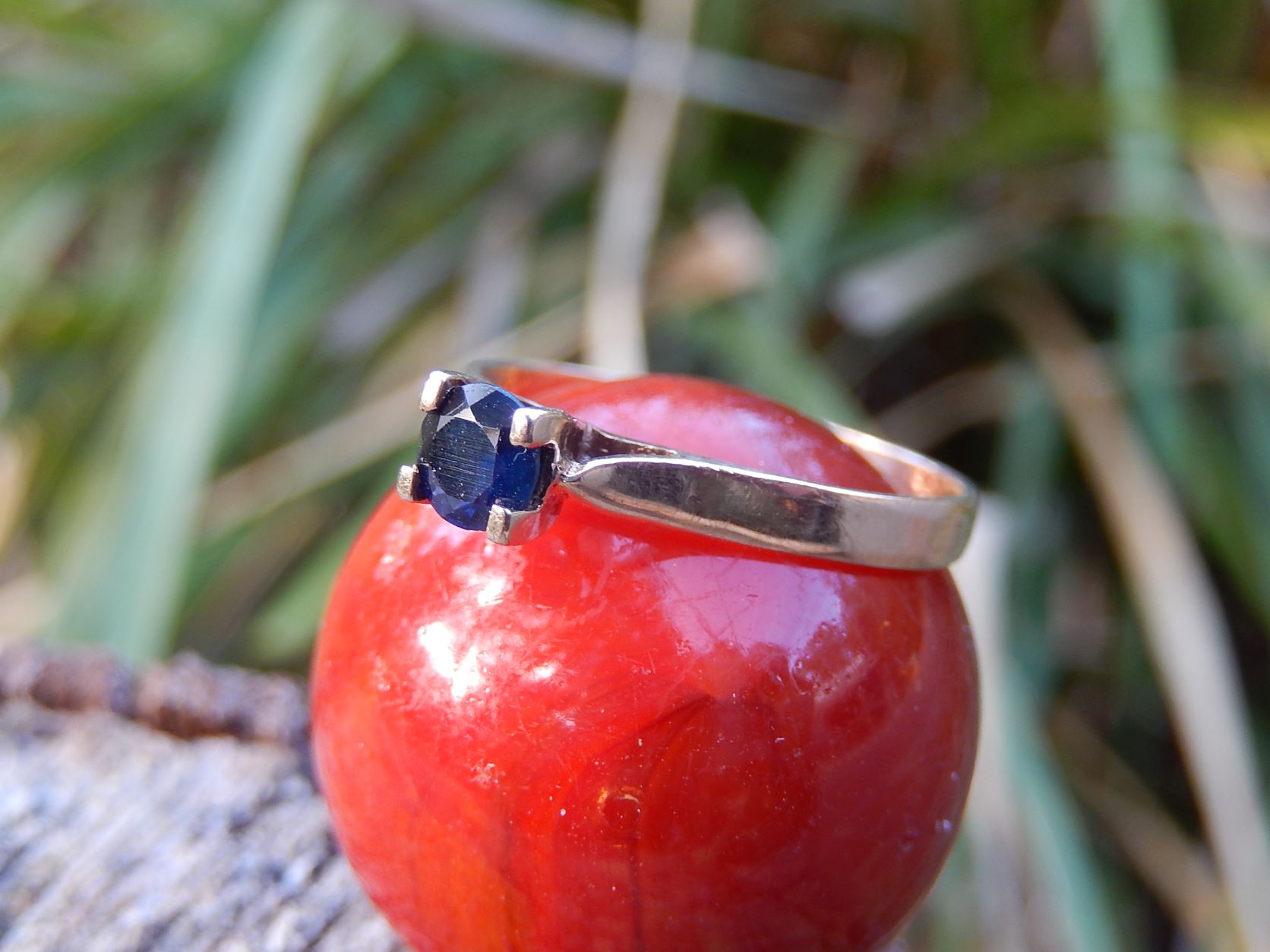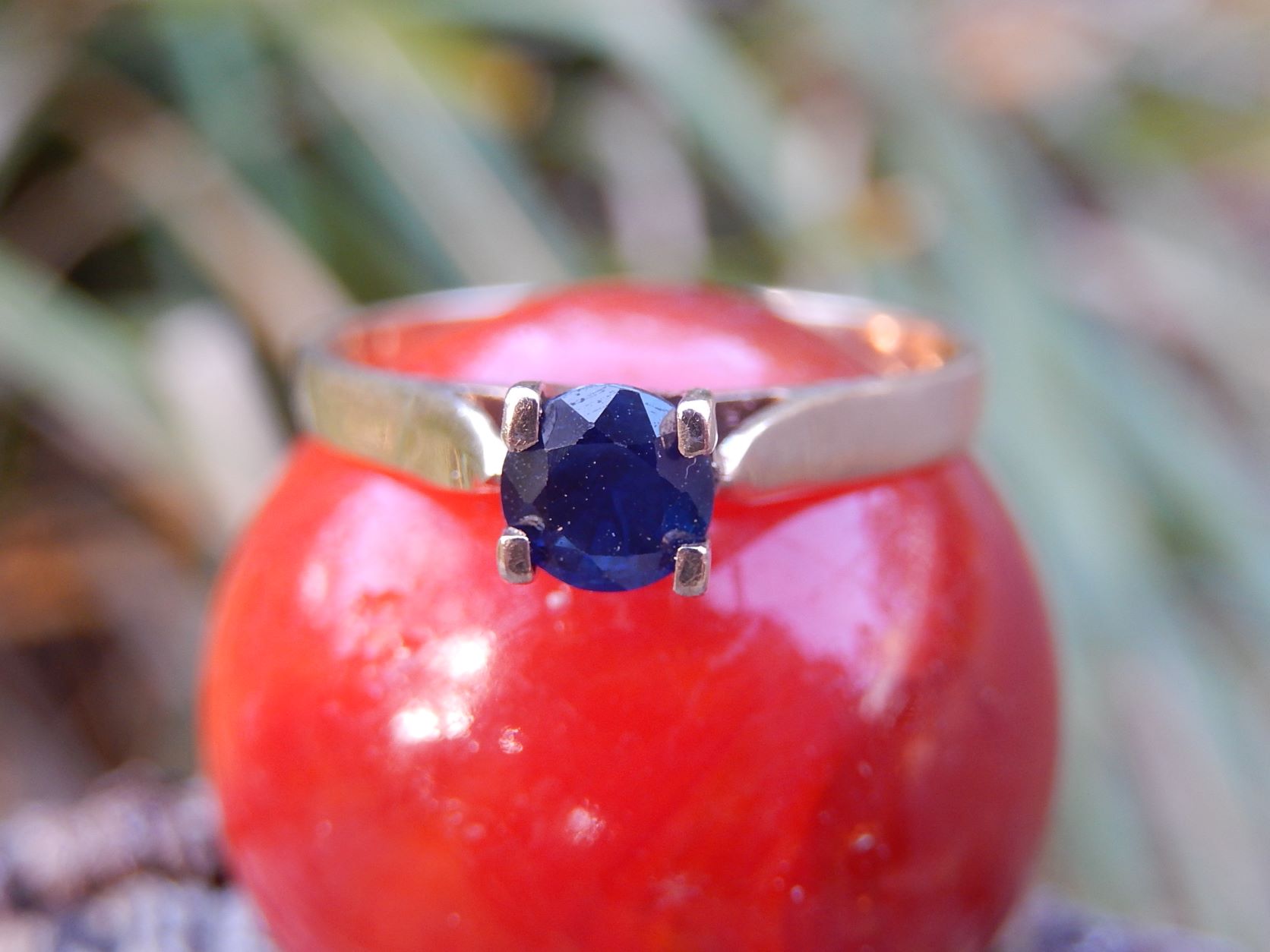 This vintage Sapphire Ring is set in 9ct Gold. It is a size O, and weighs 1.54 grams.