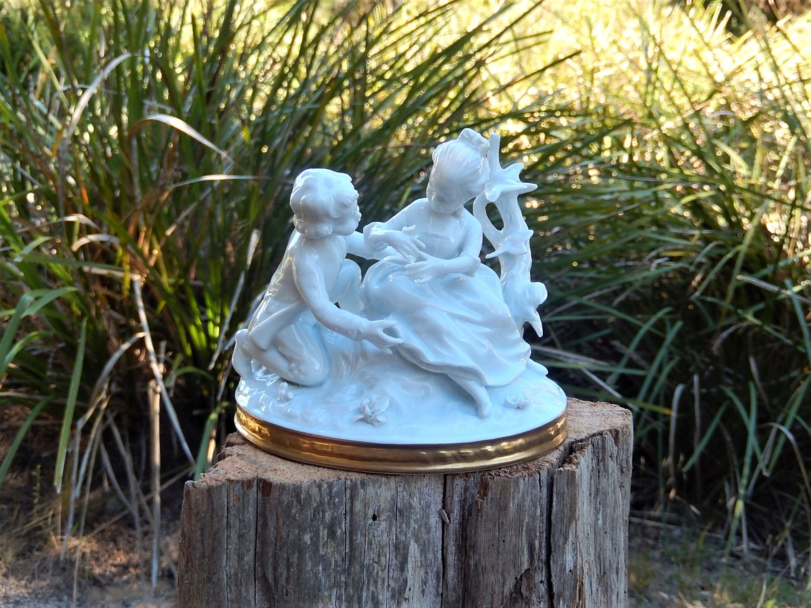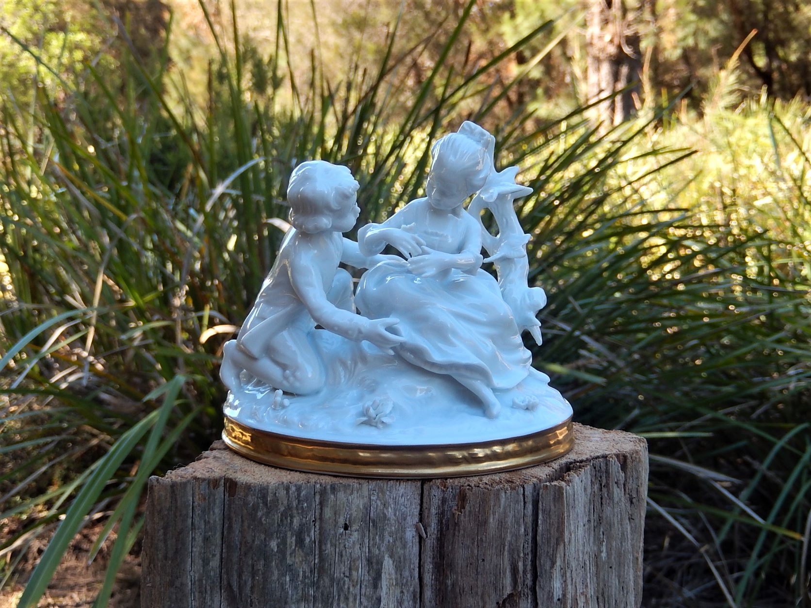 This beautifully constructed sculpture was made by the famous Unter Weiss Bach Porcelain Factory in Germany. It is 119mm high and the base is 131mm x 102mm. It is in perfect condition (there is no damage at all to the fingers – a first!).